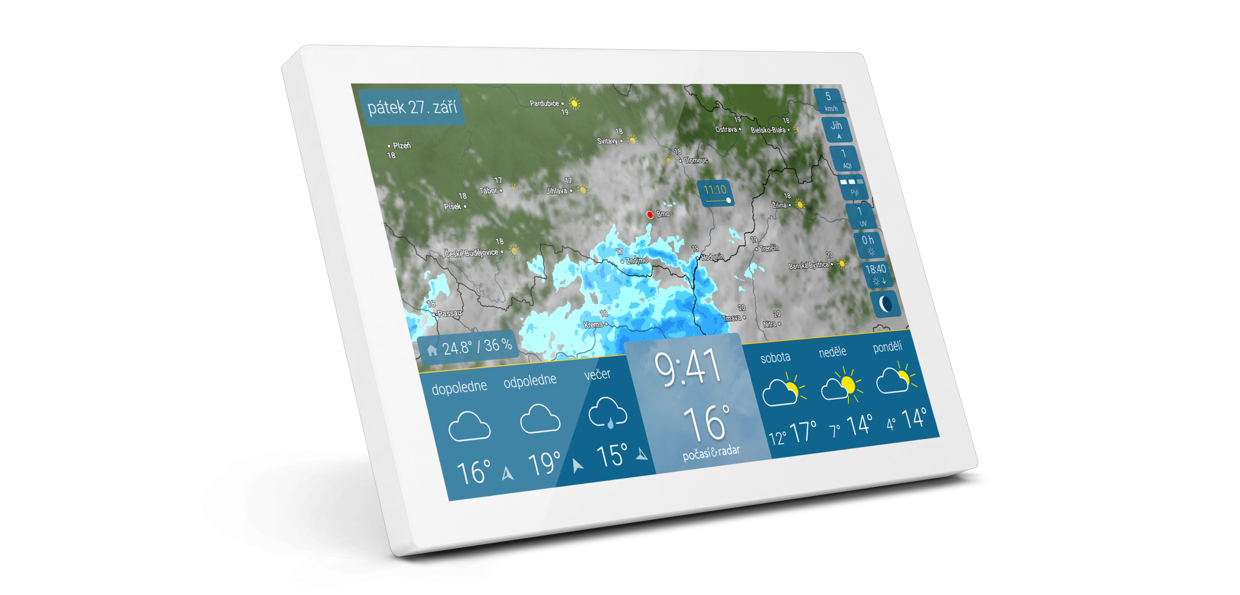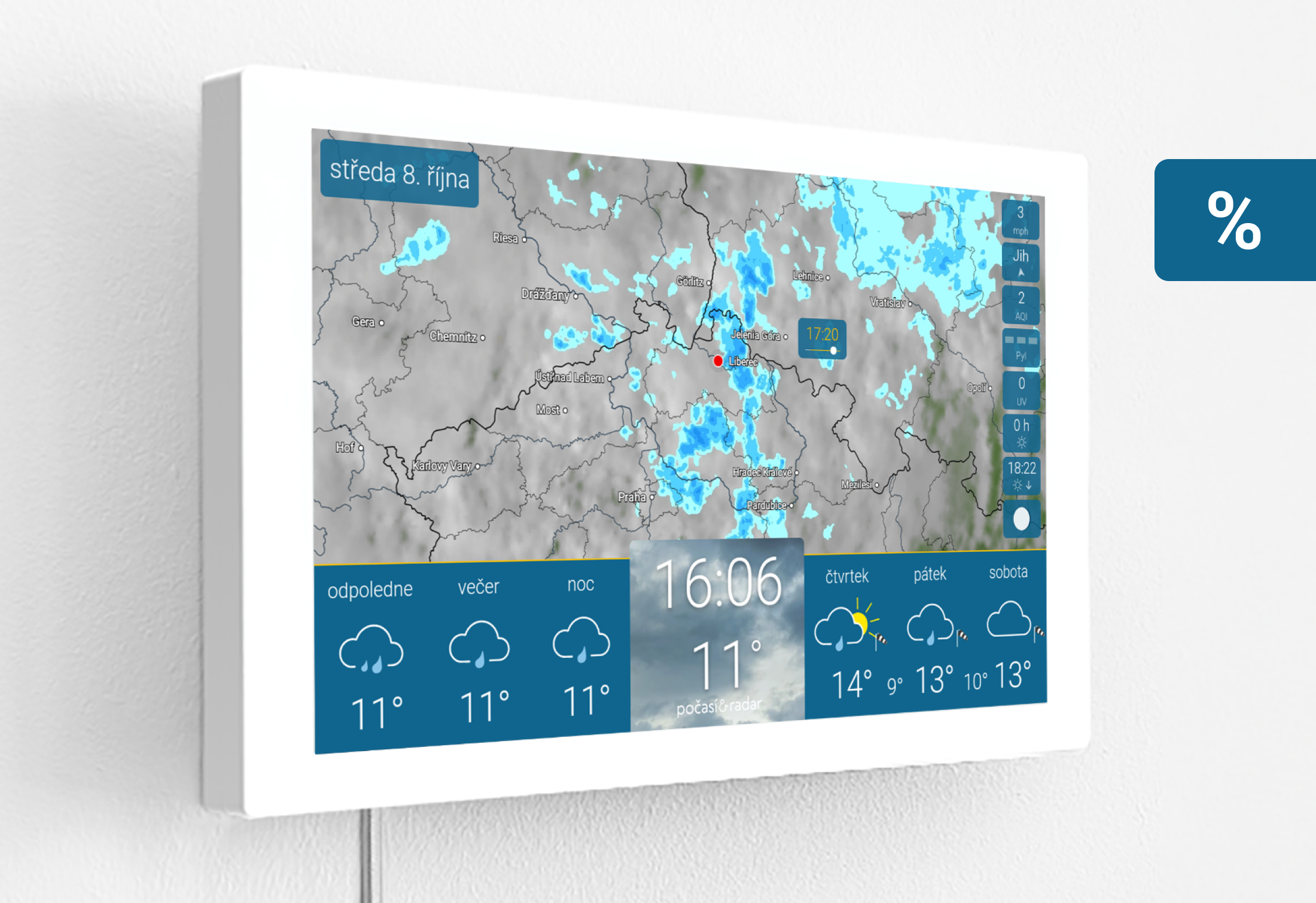 - Počasí vždy na očích – díky speciálně vyvinutému nástěnnému držáku.