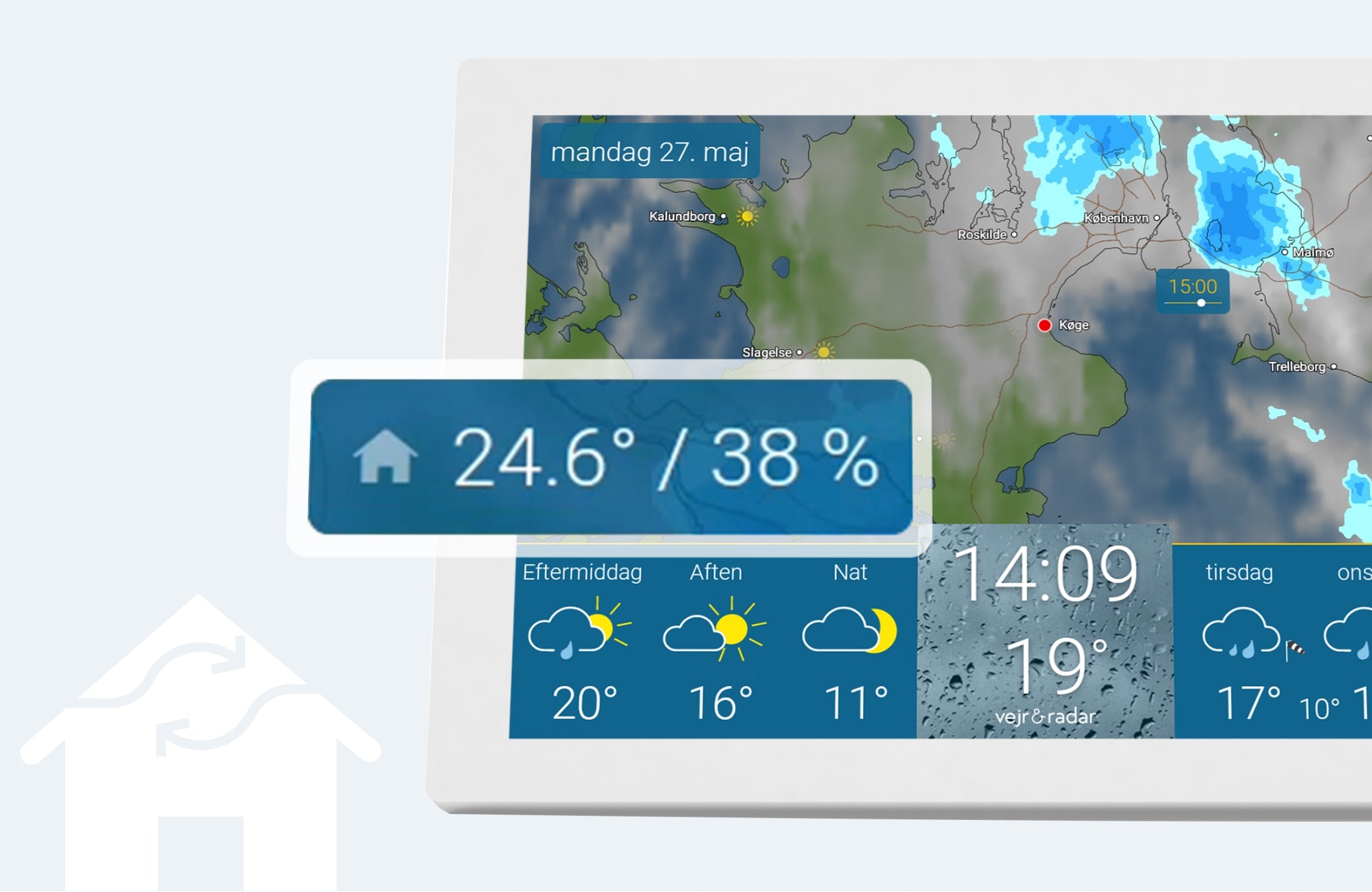 En indbygget indendørssensor måler temperatur og luftfugtighed. Disse oplysninger hjælper dig med at styre indeklimaet og regulere temperaturen effektivt.
