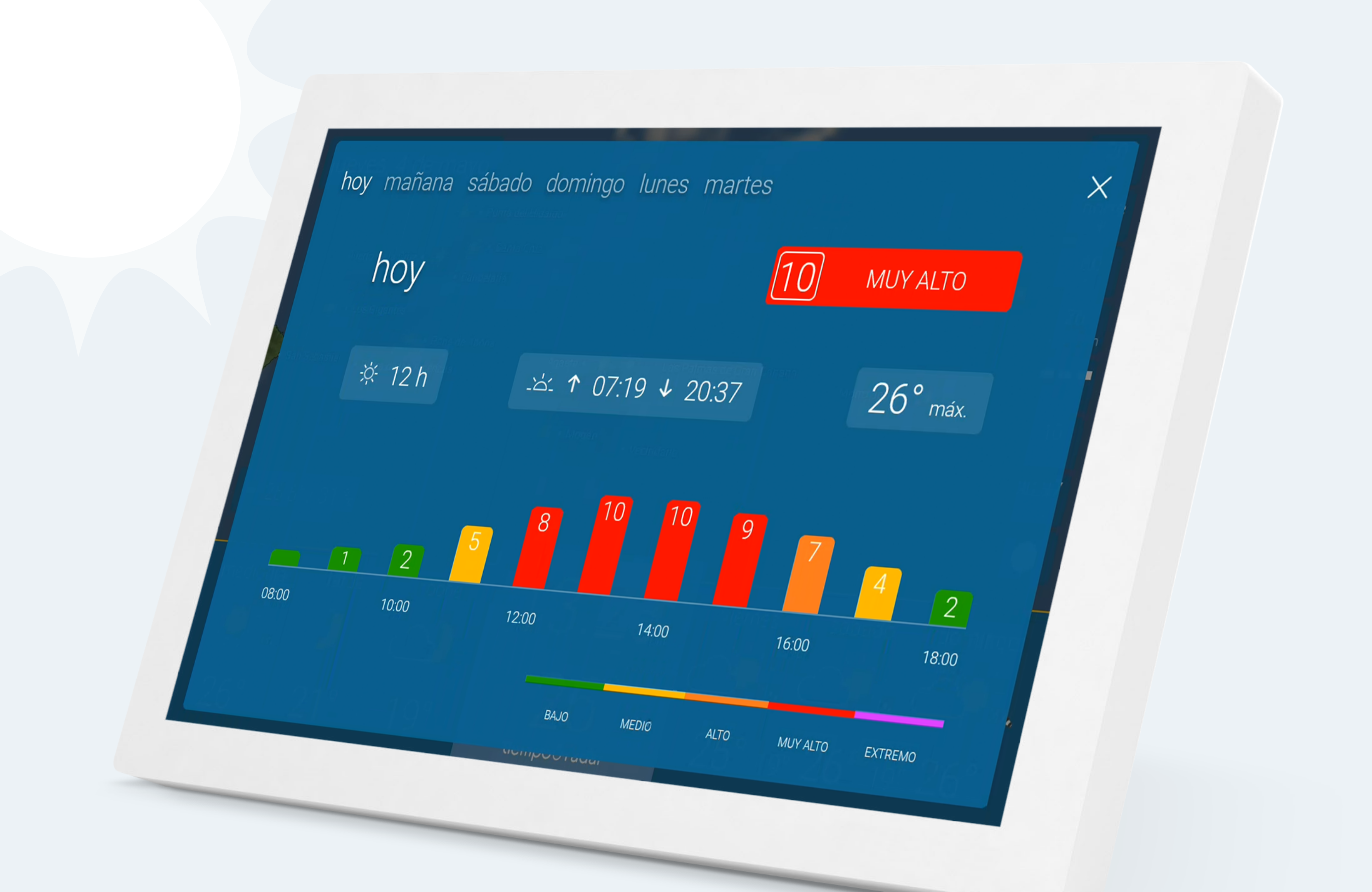 La información sobre la intensidad de la radiación te da una indicación de las medidas de protección que debes tomar en el momento y en los próximos cinco días.