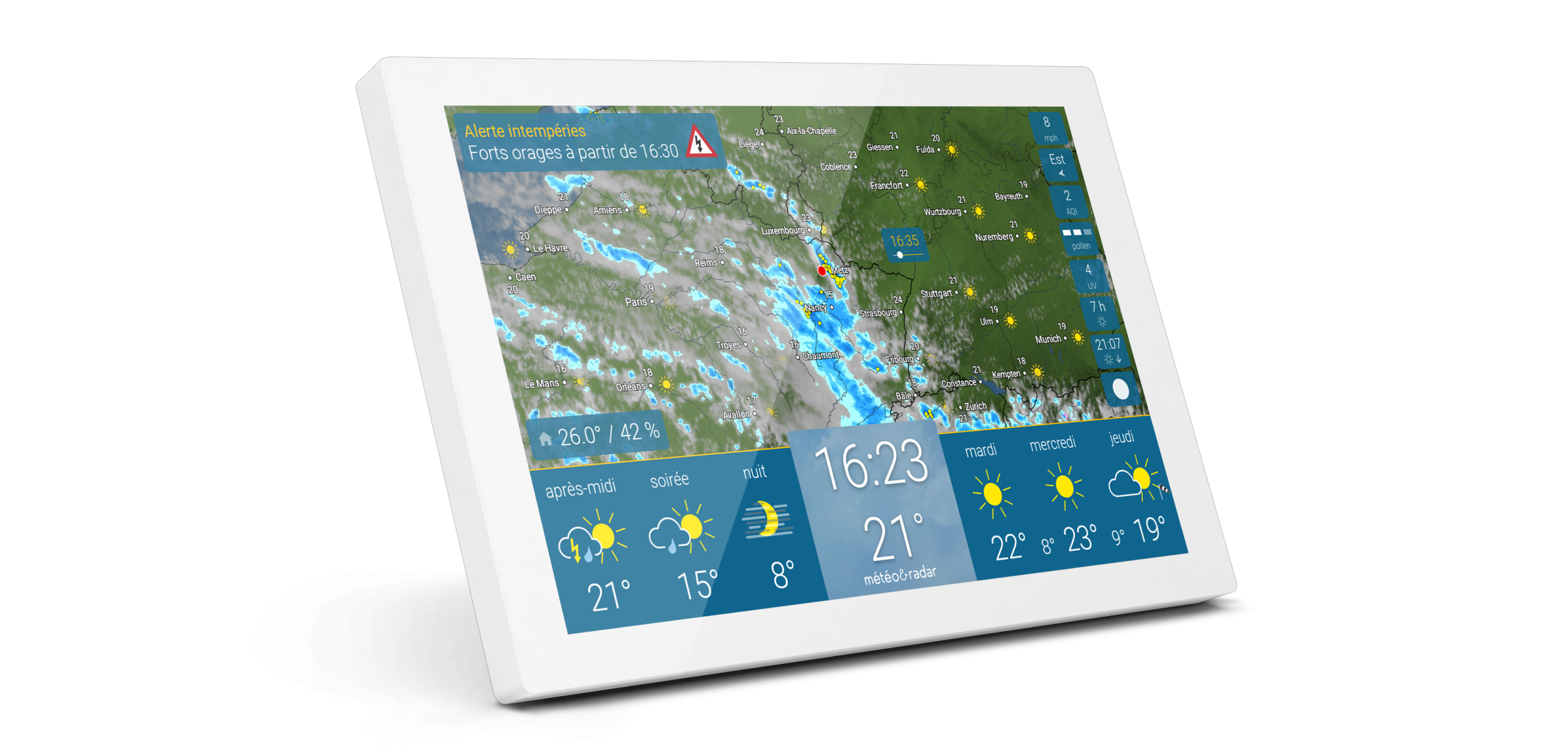 - La météo à portée de vue - grâce à un support mural adapté et spécialement conçu.