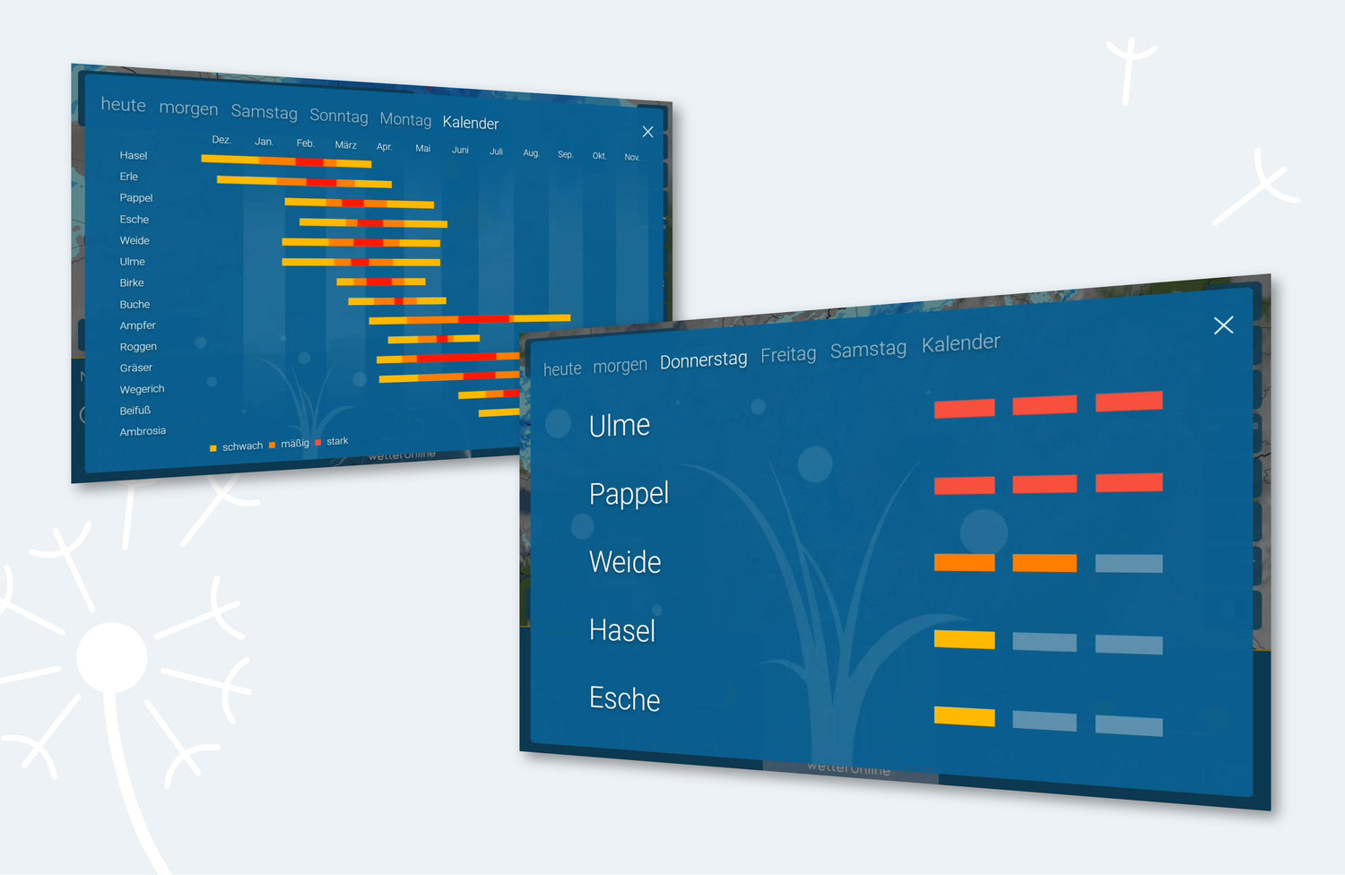Der Service für Allergiker liefert eine detaillierte Vorhersage zur aktuellen Pollenbelastung. Zusätzlich ermöglicht die Vier-Tage-Vorschau für den jeweiligen Ort eine bessere Tagesplanung.